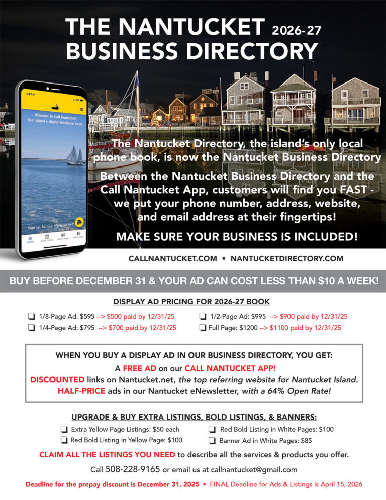 The Nantucket Directory, the island’s only local phone book, is now the Nantucket Business Directory